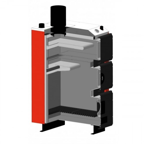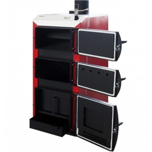 Котел снабжен тремя дверцами: нижняя для розжига и обслуживания котла, средняя для полной загрузки топки, верхняя для чистки теплообменника. Конструкция котлов выполнена таким образом, чтобы был 100% доступ ко всем поверхностям топки и теплообменника что позволяет легко и быстро проводить обслуживание, чистку котла, в отличии от жаротрубных котлов, к некоторым поверхностям которых добраться невозможно. Загрузочная дверца позволяет закладывать чурки диаметром 19,5 см и длинной 45 см.