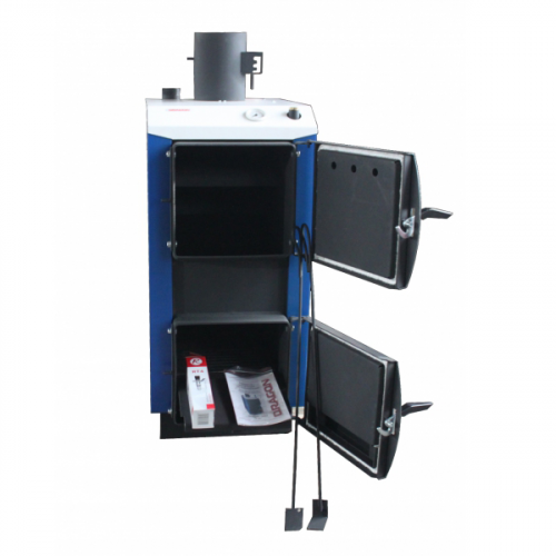 Твердотопливный котёл Dragon ТА-30 рекомендуется устанавливать в закрытых системах с принудительной циркуляцией теплоносителя. Котел оборудован термометром для контроля температуры котловой воды. Чугунные жаропрочные колосниковые решетки, через которые происходит равномерный доступ первичного воздуха для горения, являются наиболее долговечными и оптимально влияют на процесс горения. Котел снабжен тремя дверцами: нижняя для розжига и обслуживания котла, средняя для полной загрузки топки, верхняя для чистки теплообменника.